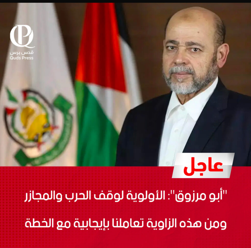 أولويتنا في حركة “حماس” هي وقف الحرب والمجازر، ومن هذا المنطلق استقبلنا الخطة بإيجابية.