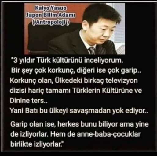 Bu konuda, Japon sosyolog Kolyo Yasuo’nun dediklerine kulak verelim: “Üç yıldır Türk kültürünü inceliyorum. Bir şey çok korkunç, diğeri ise çok garip.
