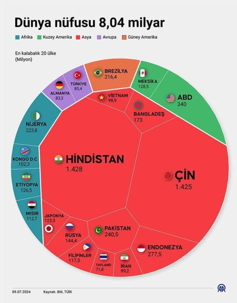 • Birleşmiş Milletler tahminlerine göre 2022 yılında 8 milyara ulaştı.