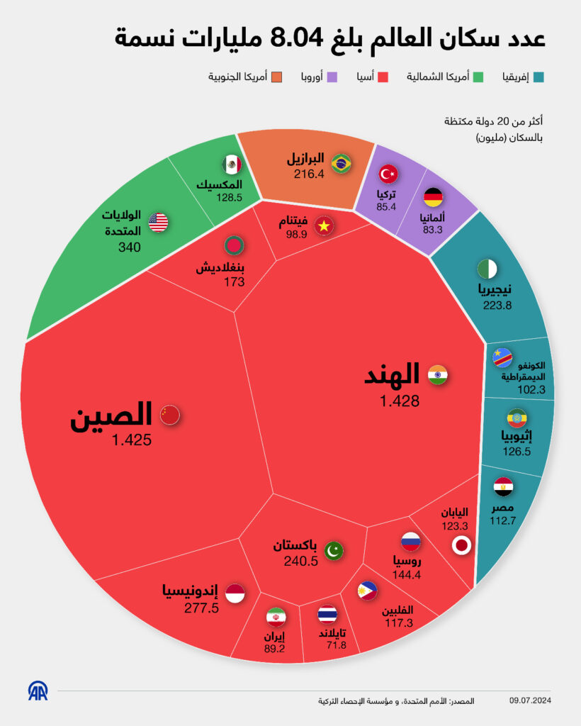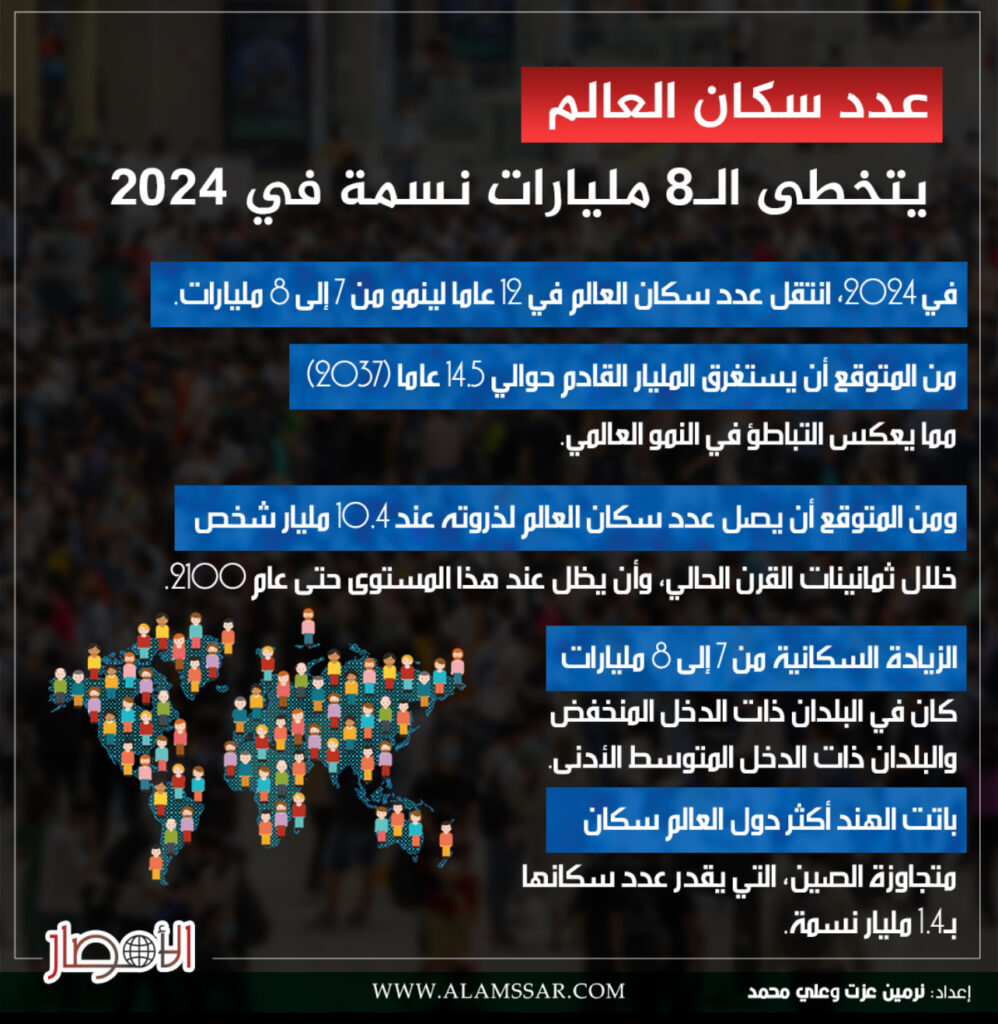 بلغ عدد سكان العالم 8.04 مليار نسمة